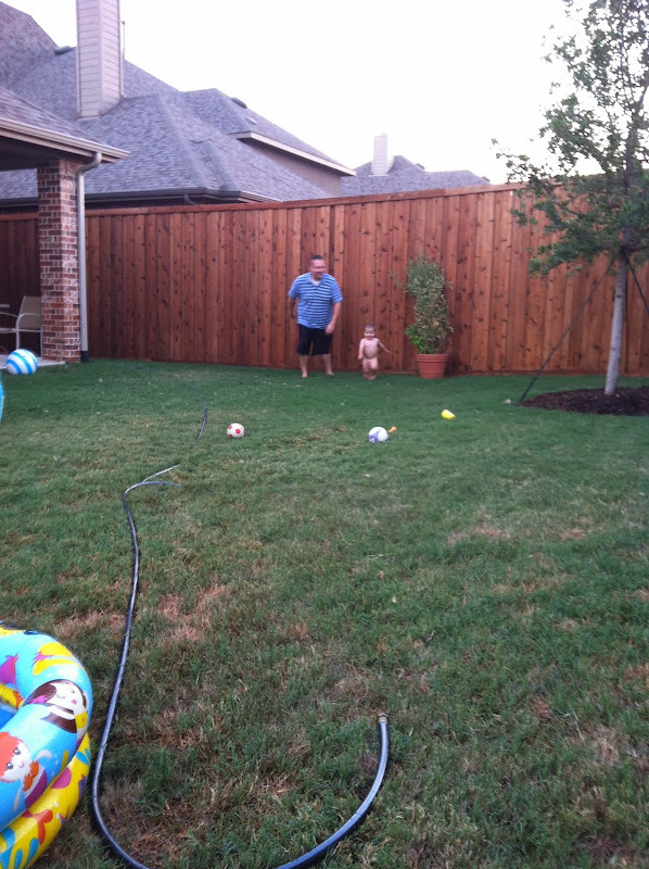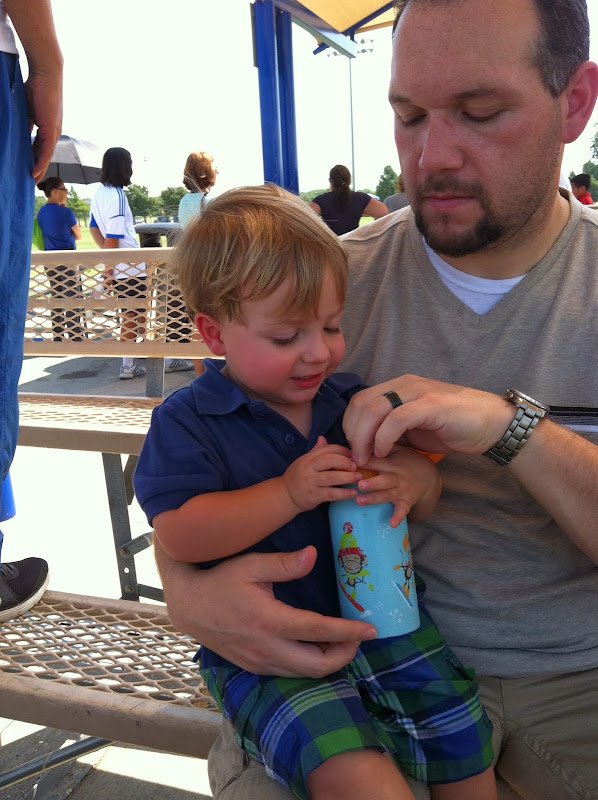 Then we went to watch our next door neighbor's son compete in a soccer tournament. It was stupid hot outside but we had fun. Max really got into the game and was giving his commentary throughout the game... "Ohhhhhhh"..."Kick it!"...."Run"...."Go white go"..."He fell down"..."He hit it with his head"...It was pretty cute and I don't think anyone around us was too annoyed with the constant commenting. :) He listened to the parents cheering and would also add in cheers using the boys' names once he heard the parents do it. The boy loves his soccer (even though their was that weird thing with him not wanting to go to the FC Dallas game).