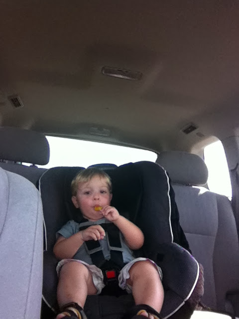 I let Max get a sucker at the Dr's instead of the usual sticker. He was in heaven and sneakily got the wrapper off while we were driving home.