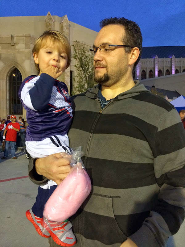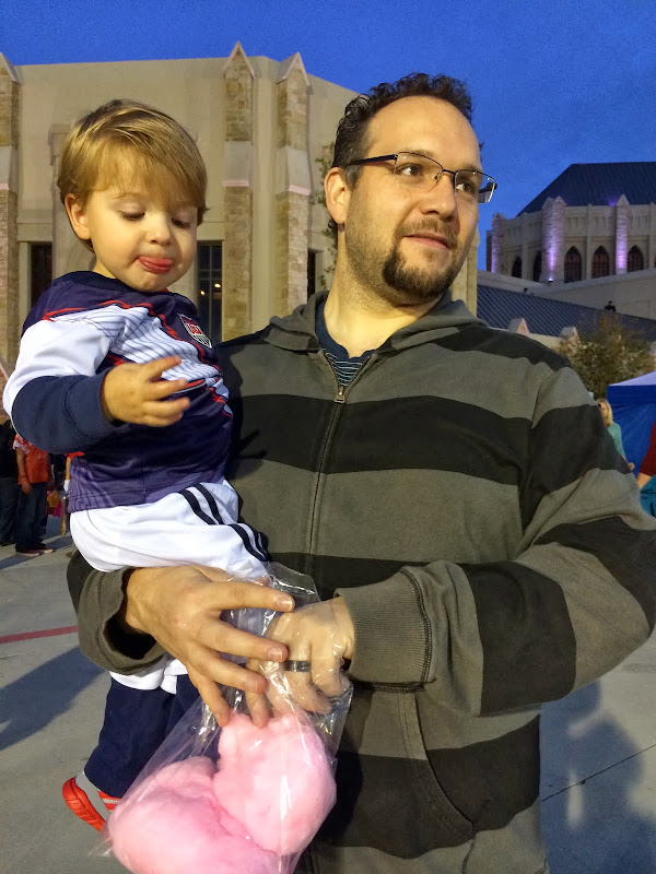 After we played the games and Landen and Hayden enjoyed some bounce houses (remember timid Max? yeah, he wouldn't even go in one), then we got Max's first cotton candy.