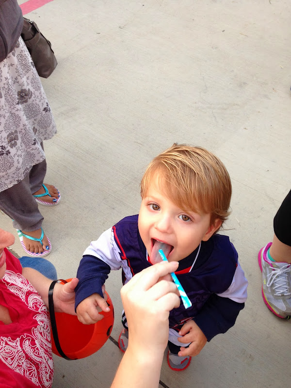 Once we let him have one piece of candy, it was all over and that became the focus. He was very happy about this sucker!