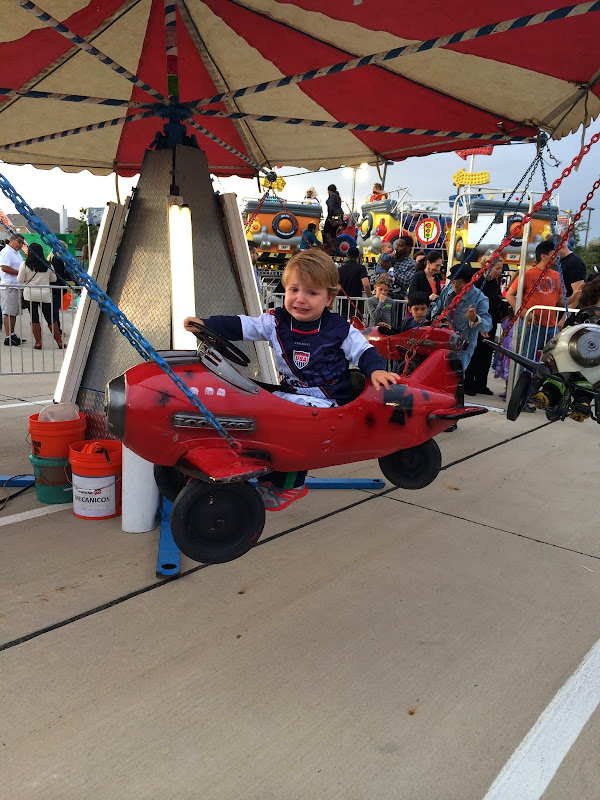 Max went on his first big kid ride. He was a little nervous with this guy helping him get buckled.